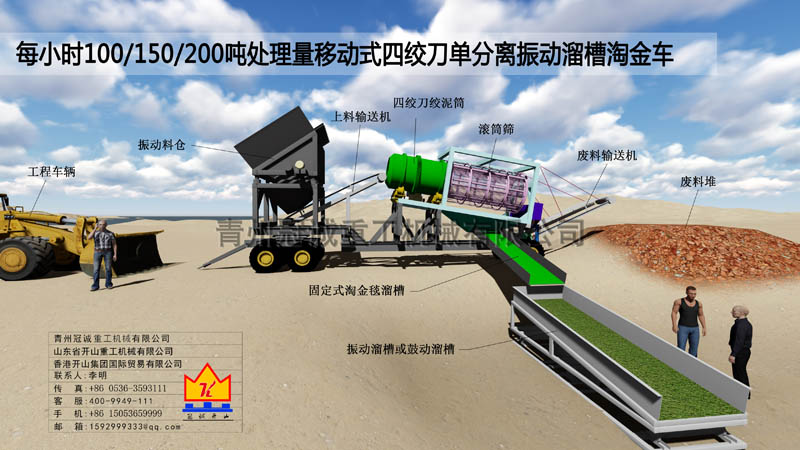 移動(dòng)式四絞刀滾筒篩單分離振動(dòng)溜槽沙金車(chē)報(bào)價(jià)